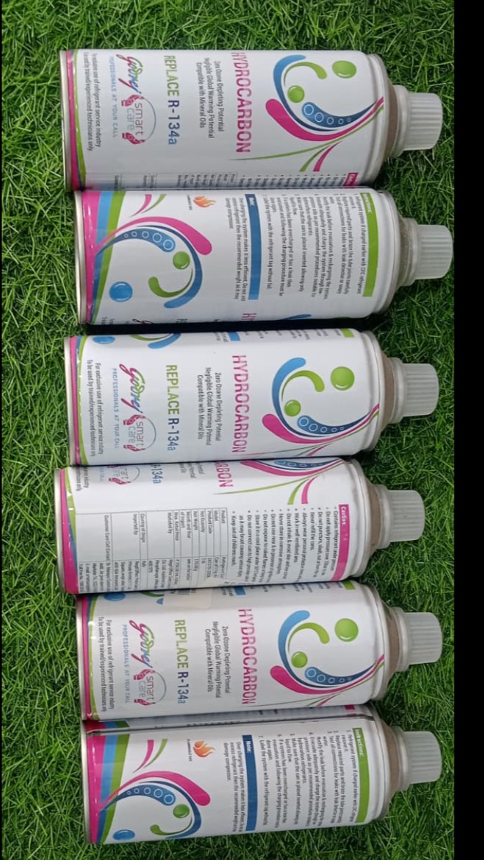 🔹 R-134a (HFC Refrigerant) Chemical name: Tetrafluoroethane Type: Hydrofluorocarbon (HFC) Used in: Refrigerators, air conditioners (including older Godrej models) Pros: Non-flammable Safe and stable Cons: High Global Warming Potential (GWP) Being phased out due to environmental